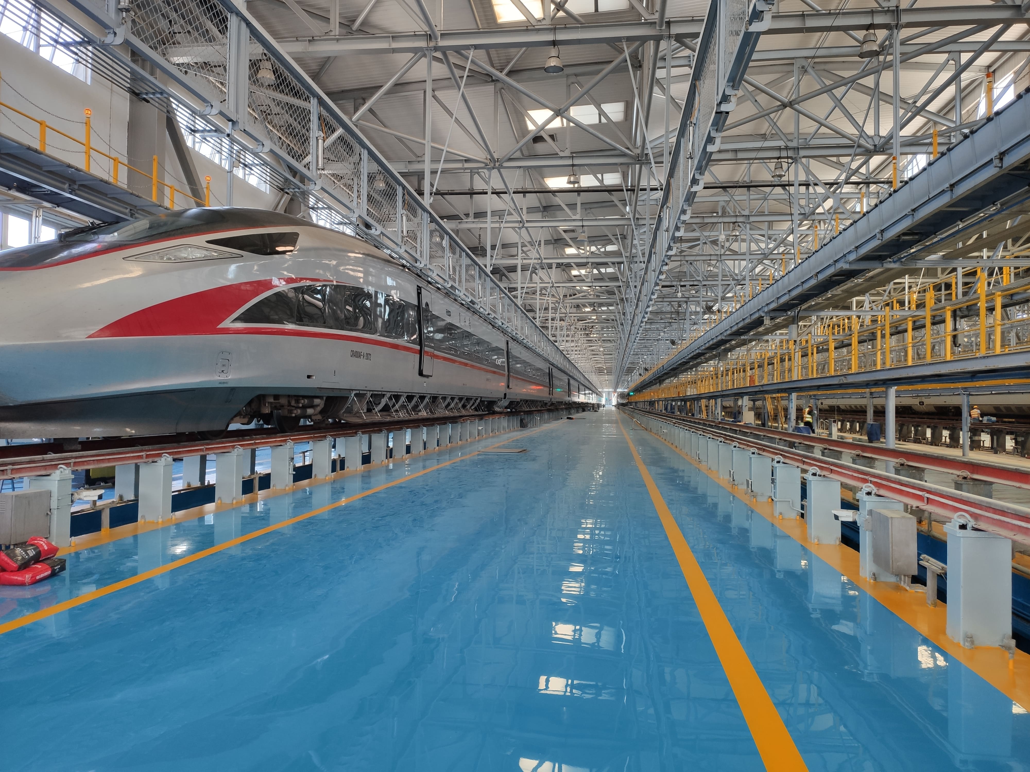 广州南站是中国铁路广州局集团管辖的特等站,是华南地区最繁忙的核心高铁站。它客流量位居亚洲高铁之首,停靠动车组数量也是全国之冠。其动车所维修基地肩负动车组的调度、维修、停车等功能,耐迪斯自流平彩砂地坪和环氧自流平地坪在多个检修库的应用,符合其强耐磨、高荷载以及装饰性的要求,为广州南站的正常运营提供了强大的保障。