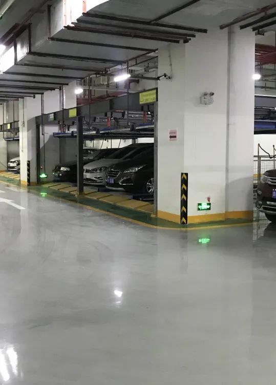 产业园的地下停车场在两年前采用了耐迪斯环氧自流平地坪。在此次登门回访,现场所见项目整体使用良好,尽管停车场行车频繁,但地面仍光洁闪亮,标线清晰,无破损、残缺及明显磨痕。